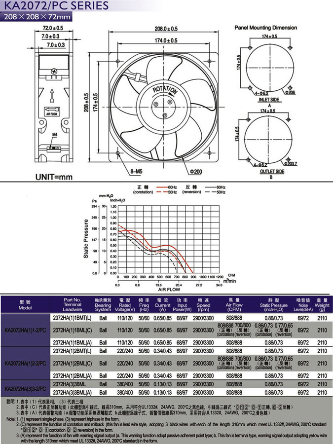 208*208*72mm(5片扇叶)